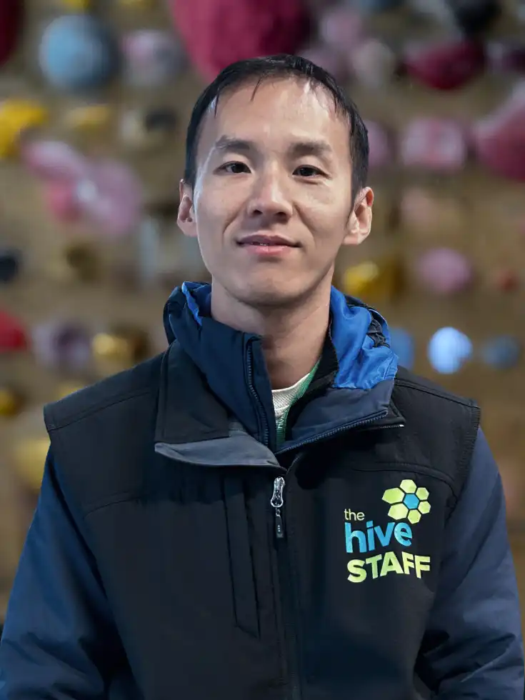 Ethan brings a laid-back vibe to the gym, fueled by T&T BBQ pork buns and a love for indie films (The Worst Person in the World is his top pick). Left-handed and allergic to apples, when he's not on the wall, he loves going for long drives. His calm demeanor and technical focus make him a great instructor for climbers of all levels.